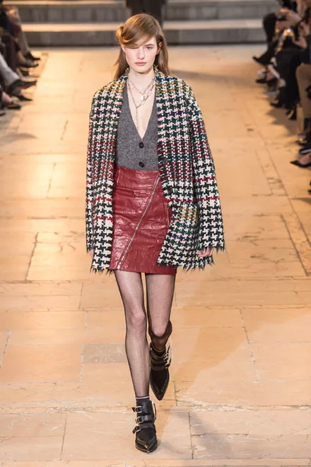 Miss Bloom's Tip: Συνδύασε διχτυωτό καλσόν με δερμάτινη, μίνι φούστα. (Isabel Marant)