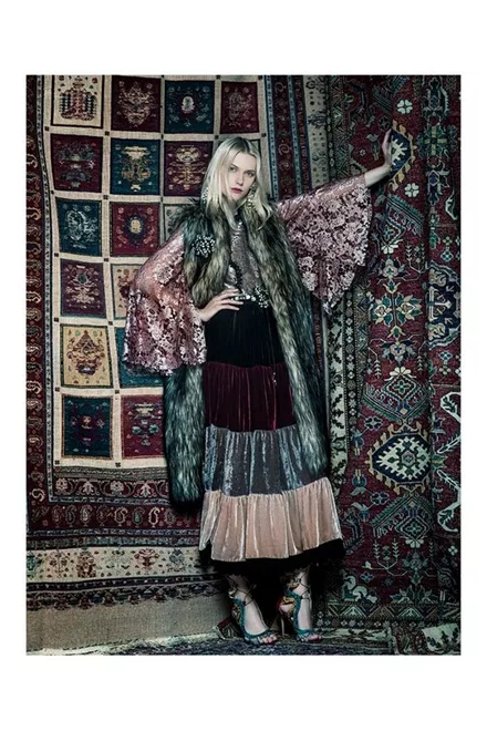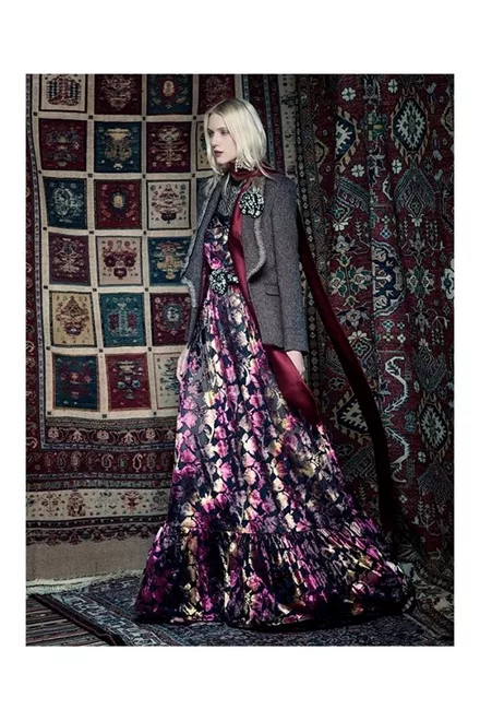 Τα παλτό είναι ανδροπρεπή και επιμηκυσμένα, τα tweed πρωινά tailored σύνολα έχουν μια αίσθηση μπουρζουά, τα εμπριμέ δανείζονται το μυστήριο και την χρωματική παλέτα της Art Nouveau. Οικολογικές γούνες με άγρια υφή έχουν φόντο μαλακά και πολυτελή βελούδα σε τόνους πολύτιμων λίθων και εξωτικών μπαχαρικών και οι μεταλλικές δαντέλες έχουν παστέλ αθώες αποχρώσεις. Το patchwork, μια από τις πιο δυνατές και εφευρετικές τάσεις της σεζόν απογειώνει τα σπορ κομμάτια από μαλακό alcadara.