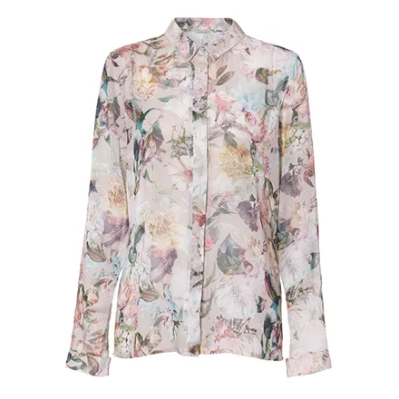 Φλοράλ πουκάμισο σε παστέλ φόντο για έναν αέρα tropical στο casual look σου.
