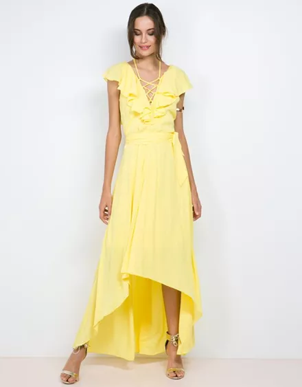 To μάξι, αέρινο με βολάν - Και για την πόλη και για το νησί. Είναι αρκετά εντυπωσιακό και σε περίπτωση που είσαι η κουμπάρα!Ασύμμετρο φόρεμα με βολάν Lynne, 79,90 ευρώ, lynneshop.com