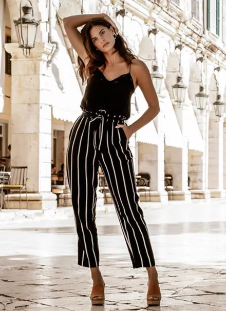Το outfit για κάθε στιγμή της ημέρας - Χριστίνα ΜπόμπαΜε ένα ψηλόμεσο, ριγέ παντελόνι, ένα θηλυκό μαύρο top, statement σκουλαρίκια και ηλιοκαμμένο beauty look, ένα είναι σίγουρο: ποτέ ξανά μια ολοήμερη βόλτα στο νησί δεν έδειχνε τόσο stylish.