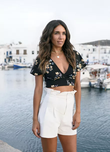 Το λευκό shorts επιστρέφει - Ευαγγελία ΤσιορλίδαΤο black&white παραμένει ένας από τους αγαπημένους μας συνδυασμούς, μόνο που αυτή τη φορά η έμφαση δίνεται κυρίως στο λευκό, μέσα από ένα ψηλόμεσο shorts. Αν θέλεις βέβαια κι εσύ έξτρα πόντους στυλ, επένδυσε στο layering χρυσών κοσμημάτων στο λαιμό για ένα πολύ κομψό αποτέλεσμα!