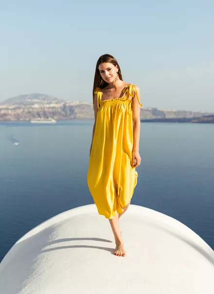Το must-have κομμάτι της σεζόν - Ζήνα ΧαρκοπλιάΉταν, είναι και θα είναι το απόλυτο χρώμα του καλοκαιριού: το κίτρινο πρωταγωνιστεί για μία ακόμη σεζόν στη γκαρνταρόμπα μας και μάλιστα στην πιο θηλυκή εκδοχή του. Με μία ανάλαφρη midi γραμμή και δύο silk κορδόνια που καταλήγουν σε φιόγκους, αυτό το φόρεμα είναι το ιδανικό key item των φετινών διακοπών σου!