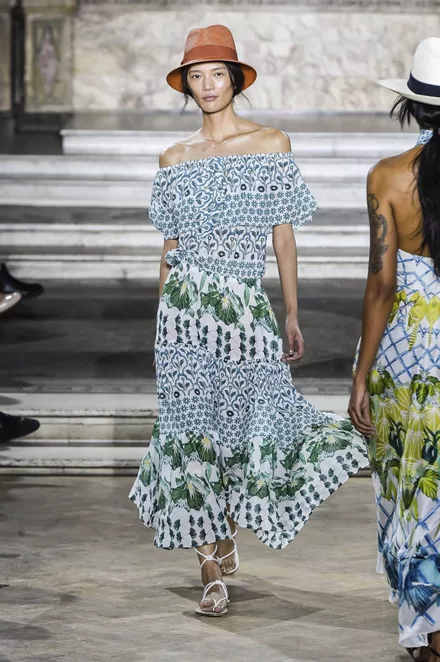 Μοτίβα σε λευκό background και εκτεθειμένοι ώμοι δημιουργούν το τέλειο σύνολο για μία κομψή εμφάνιση που αναδεικνύει το στυλ σου. Θυμήσου πως σε αυτή τη φάση δεν θέλεις να πείσεις κανέναν πως είσαι street style star. (Temperley London)