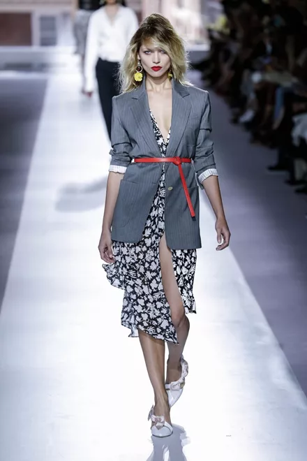Ένα μαλακό σακάκι πάνω από ένα φλοράλ φόρεμα και μία λεπτή ζώνη για έμφαση στη μέση «συνθέτουν» μία κομψή εμφάνιση. (Topshop)