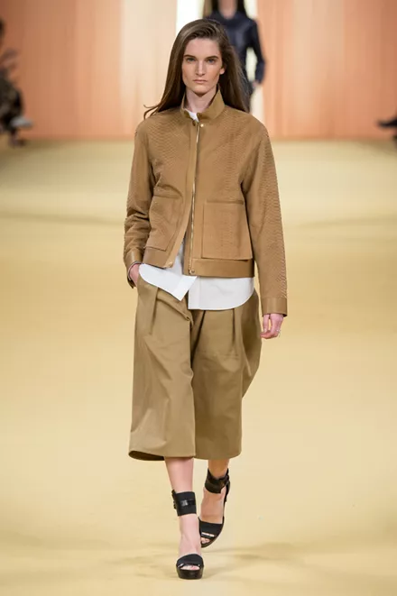 Δεν ξέρεις από που να αρχίσεις με το layering; Ένα cropped jacket, μία τυνίκ και ένα παντελόνι μέχρι τη γάμπα είναι ο πιο απλός, κομψός και ασφαλής συνδυασμός. (Hermes)