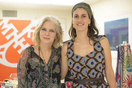 Η οικοδέσποινα του Benaki Shop, Διευθύντρια των Πωλητηρίων του Μουσείου Μπενάκη, Δέσποινα Γερουλάνου, με την Irène Mamfredos.