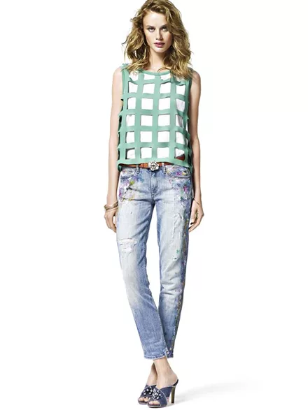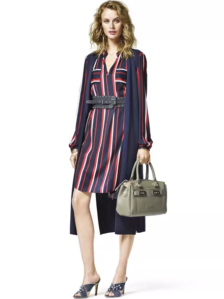 Οι κάθετες ρίγες και τα bandana prints κάνουν την εμφάνισή τους, ενώ διακρίνονται δύο κεντρικοί άξονες στη συλλογή: το Romantic Safari και το Summer Fresh. Πρόκειται για δύο παιχνιδιάρικα και fun trends σε αποχρώσεις που κινούνται από το ανοικτό πράσινο, το φωτεινό κίτρινο, το ροζ-μοβ και το σκούρο μπλε, μέχρι τους nude τόνους της σαμπάνιας και του ζεστού καφέ, αλλά και το λευκό.