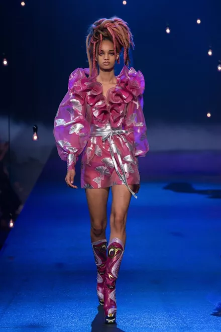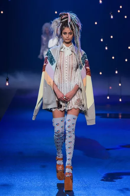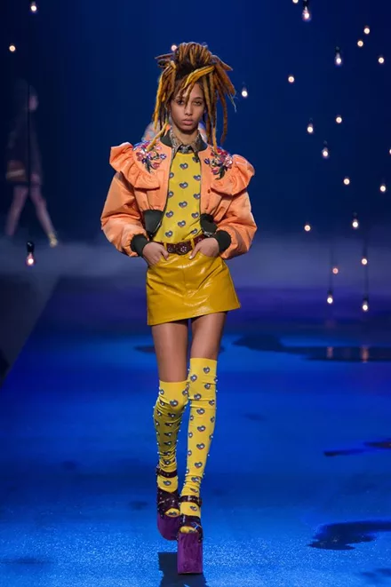Με κύρια συστατικά τη λάμψη, την πολυτέλεια, την ανεμελιά και την άκρατη νιότη ο Marc δημιούργησε μια συλλογή που μοιάζει με ύμνο στη ζωή και τη διασκέδαση! Επώνυμα και μη μοντέλα διέσχισαν την, ήδη εντυπωσιακή, πασαρέλα με περίτεχνα ράστα σε παστέλ χρώματα, outfits γεμάτα με πολύχρωμες παγιέτες, μεταλλιζέ δέρματα, φτερά και αέρινα βολάν, και τις πιο ψηλές πλατφόρμες που έχουμε δει ποτέ!