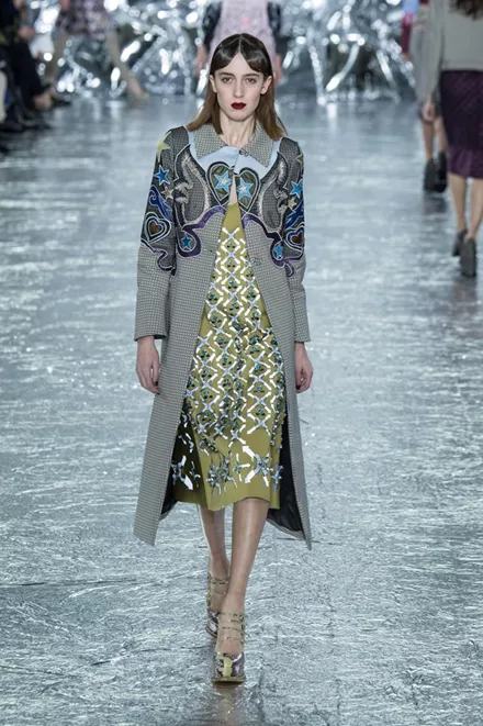 Με έντονα κεντήματα και διακοσμήσεις αλλά και γνώριμες, ultra θηλυκές φόρμες "έντυσε" η Mary Katrantzou τη γυναίκα για τον Χειμώνα του 2017. Μπορεί η σιλουέτα να μην είναι κάτι το νέο και μάλιστα να θυμίζει έντονα εκείνη που καθιέρωσε η Miuccia Prada με τις συλλογές της το 2012-2013 ωστόσο υπήρχε ένα στοιχείο που έκανε τη συλλογή της ελληνίδας σχεδιάστριας να ξεχωρίζει: Η αριστοτεχνική της ικανότητα να διακοσμεί και να δημιουργεί μοναδικά μοτίβα.
