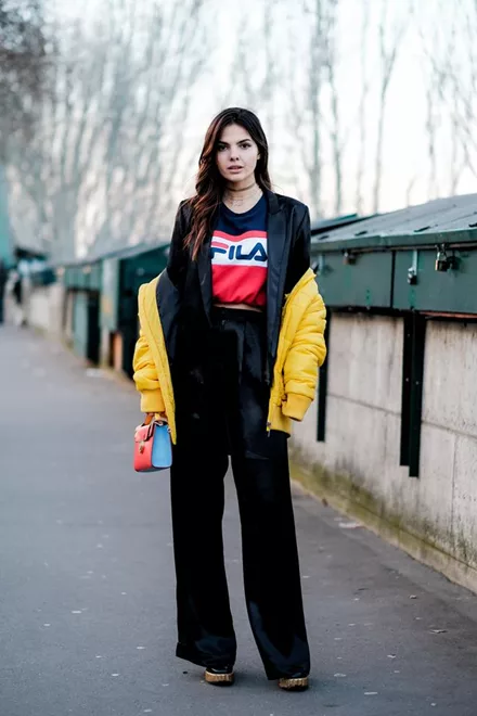 Ένα ψηλόμεσο παντελόνι και ένα graphic φούτερ είναι το νέο sporty στυλ που υπογραμμίζεται από την απόλυτη τάση για φέτος, το puffer jacket.