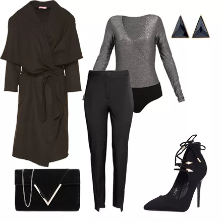 Κορμάκι, e-xclusive, από 39 τώρα 19 ευρώ, e-xclusive.comΠαντελόνι, H&M, 39,99 ευρώ, hm.comΠαλτό, Pink Woman, από 69,99 τώρα 48,99 ευρώ, pinkwoman-fashion.comClutch, Migato, 40,00 ευρώ, migato.comΣκουλαρίκια, Axel, 11,30 ευρώ, axelaccessories.comΓόβες, Bozikis, 29,99 ευρώ, bozikis.gr