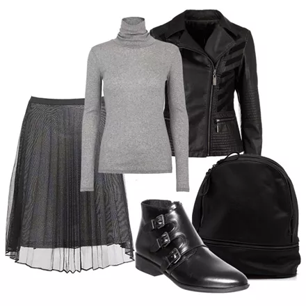 Φούστα, 55 ευρώ, www.e-xclusive.comΜποτάκι, Attrattivo, 109.90 ευρώ, www.attrattivo.grΖιβάγκο, Just Female, 48 ευρώ, favela.grΣακάκι, Axel, 94 ευρώ, www.axelaccessories.comΣακίδιο, Bozikis, 24.99 ευρώ, www.bozikis.gr