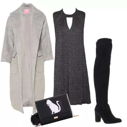 Μini μεταλλιζέ φόρεμα, BSB, 59.90 ευρώ, www.bsbfashion.com Οver the knee μπότα, IQshoes, 54.90 ευρώ, www.iqshoes.grΜaxi παλτό, Pink Woman, από 69.99 ευρώ τώρα 48.99 ευρώ, www.pinkwoman-fashion.com Κρεμαστό τσαντάκι, Lydc, 33.00 ευρώ, www.favela.gr