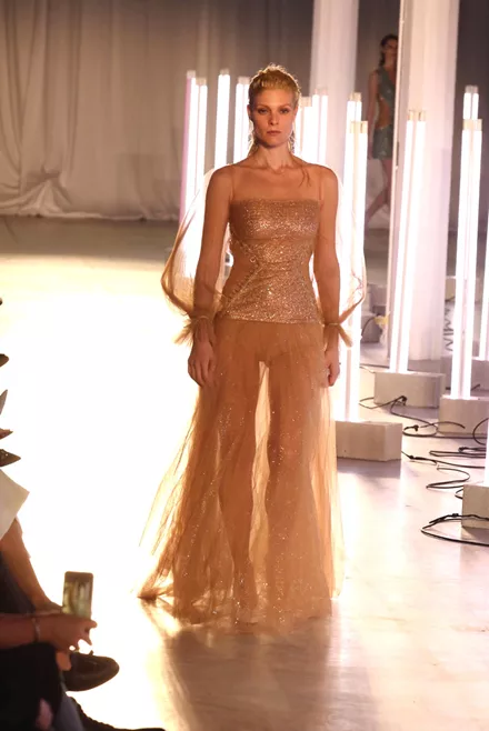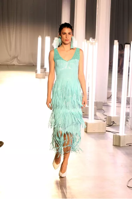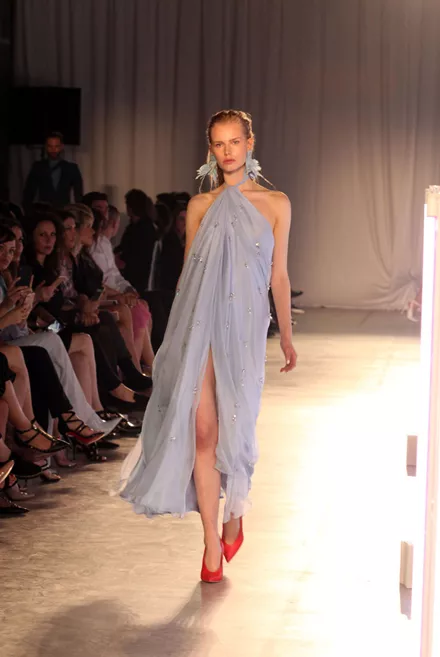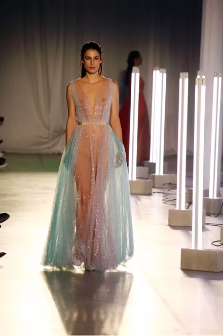 Το Ωδείο Αθηνών που φιλοξένησε για ακόμη μια φορά το show πλημμύρισε απο μικρά 80ς φορέματα, ρευστές παγέτες, patchwork από disco glitter σε παστέλ και λαμπερές αποχρώσεις του τυρκουάζ, του γαλάζιου, της λεβάντας, του ροζ και του κόκκινου, με διαφορετικές υφές και ντραπέ τεχνικές που πότε αγκαλιάζουν και πότε αποκαλύπτουν το σώμα!