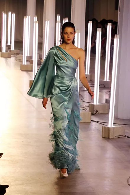Καταρράκτες από φτερά πάνω σε λείο μεταξωτό σατέν αλλά και έντονοι ώμοι σε αέρινα φορέματα, ανδρόγυνα κοστούμια με εκρήξεις από κρύσταλλα, αυθάδικα μίνι με ανοίγματα συνθέτουν μία συλλογή αποπνέει πολυτέλεια και sex appeal!