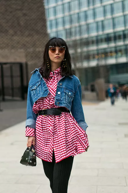 Φόρεσε ένα μίνι φόρεμα σαν πουκάμισο πάνω από το μαύρο παντελόνι σου. Το denim jacket σε τόσο κοντό μήκος δίνει ένταση.