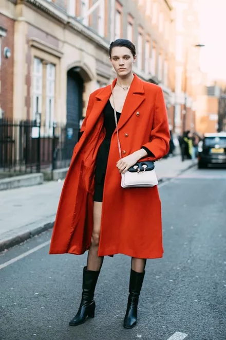 Μια καμπαρντίνα στο χρώμα της φωτιάς και ένα μικρό μαύρο φόρεμα είναι όλα όσα χρειάζεσαι για να δειχνεις άψογα.