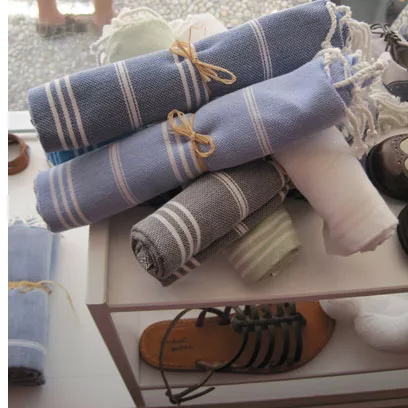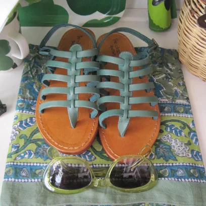 Δεν υπάρχει περίπτωση να πιάσεις στα χέρια σου τα σανδάλια που σχεδιάζει η ίδια και τα δίνει να τα φτιάξουν στο χέρι τεχνίτες της Ιταλίας, που είχε την τύχη να γνωρίσει κατά την επαγγελματική της πορεία και να μην θαυμάσεις το στυλ τους και την κατασκευή τους. Κοντά σε αυτά, υπάρχουν όμως και άλλα πολλά, όλα ιδανικά για τη βαλίτσα των διακοπών. Ενδεικτικά αναφέρω: παρεό - ειδική παραγγελία στην Ινδία, πετσέτες χαμάμ - ειδική, πάλι, παραγγελία στην Τουρκία, πάνινες τσάντες-ταγάρια, πρωτότυπα κολιέ φτιαγμένα από φίλη της Χριστίνας, καφτάνια από το Μαρόκο αλλά και άλλα μέρη, μαγιό της Laura Urbinati (το brand που αγαπά η Χριστίνα στο swimwear και με βρίσκει τόσο σύμφωνη) και μια πολύ ιδιαίτερη επιλογή από γυαλιά ηλίου. Συνεχίζω: λινά για το σπίτι από την Ιταλία, αρωματικά ντουλάπας από την Προβηγκία, γαλλικά αρωματικά κεριά και argan oil καλλυντικά, αυθεντικά καπέλα Παναμά. Στα χειροποίητα αξεσουάρ, προσθέτω και τα ανδρικά δερμάτινα παπούτσια, τα bebe oxfords και τη συλλογή από δερμάτινα βραχιόλια σε σχέδιο της Χριστίνας, που έχουν γίνει το must του νησιού. Γενικά η επιλογή σε όλα είναι αξιοθαύμαστη και αυτό είναι κάτι ακόμα που κάνει το The Closet να ξεχωρίζει.