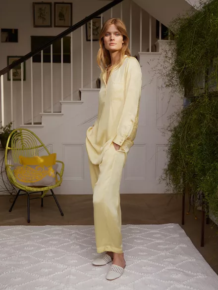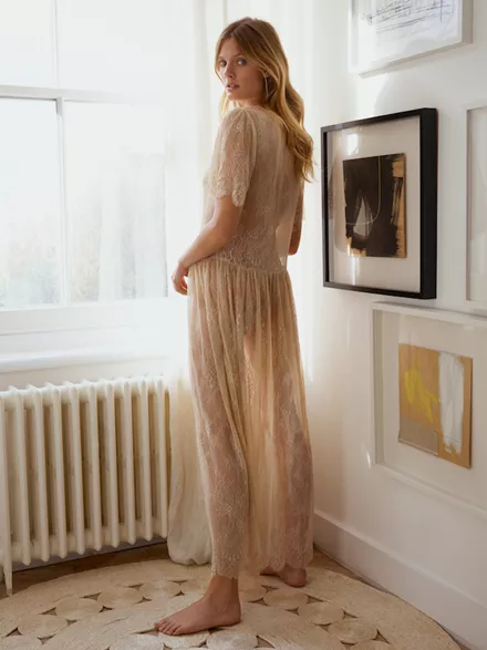 Το supermodel με τη γαλλική μύτη, τα ξανθά μαλλιά και τα υπέροχα μάτια ντύνεται με τα μεταξωτά νυχτικά και τα άνετα πλεκτά της συλλογής και ποζάρει στο κρεβάτι. Λεπτομέρειες από δαντέλα και ρομαντικά φλοράλ συμπληρώνουν μία συλλογή που θυμίζει την κομψή εξοχή της Ιταλίας και της Γαλλίας.