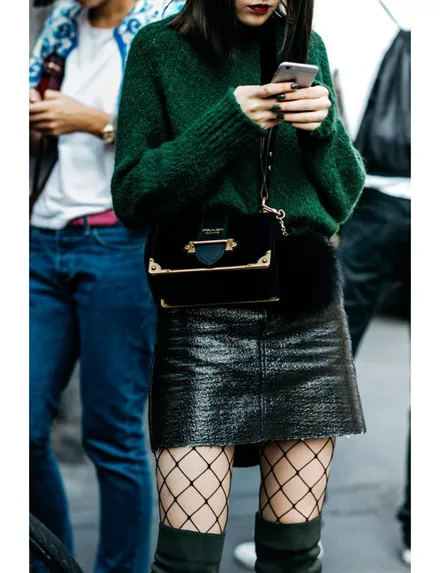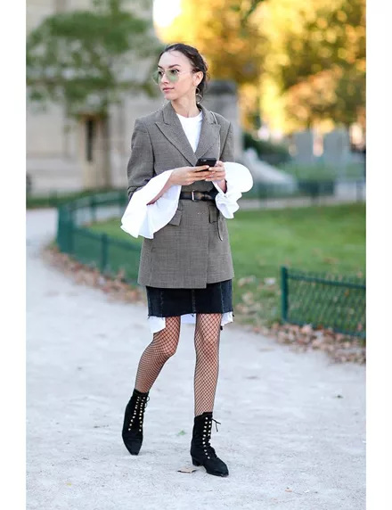 Τα σοφιστικέ υφάσματα όπως τα μάλλινα τουίντ αποκτούν μια πιο νεανική πλευρά με την προσθήκη ενός διχτυωτού καλσόν. Τόλμησέ το!