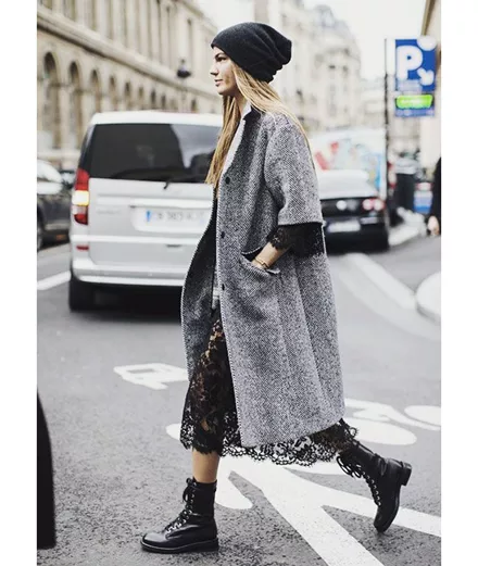 Φόρεσε το δαντελένιο φόρεμα μαζί με τα combat μποτάκια σου, ένα oversized παλτό και πλεκτά αξεσουάρ