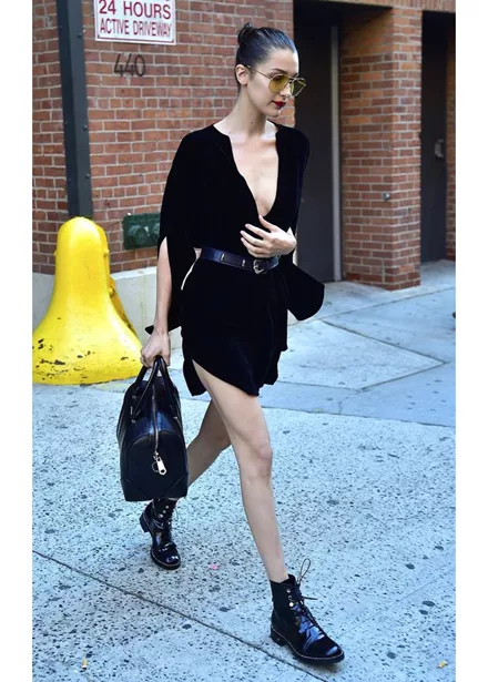 Φόρεσε το μικρό μαύρο φόρεμα με μπότες και casual αξεσουάρ, όπως κάνει η Bella Hadid.
