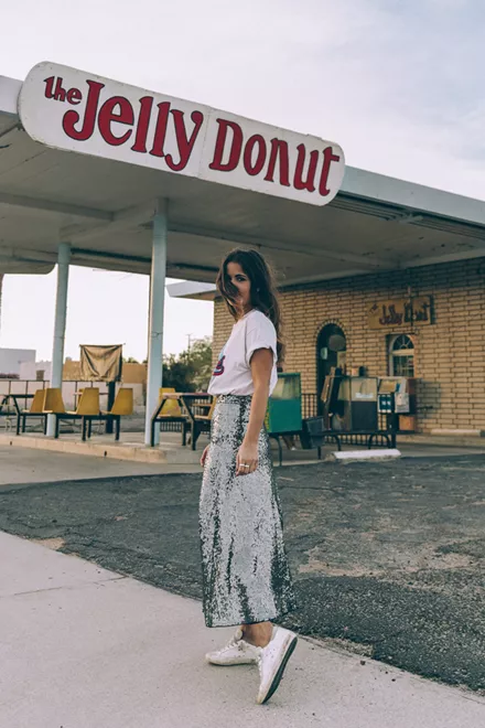 Φόρεσε τη φούστα με τις παγιέτες με ένα T-shirt και φλατ sneakers!