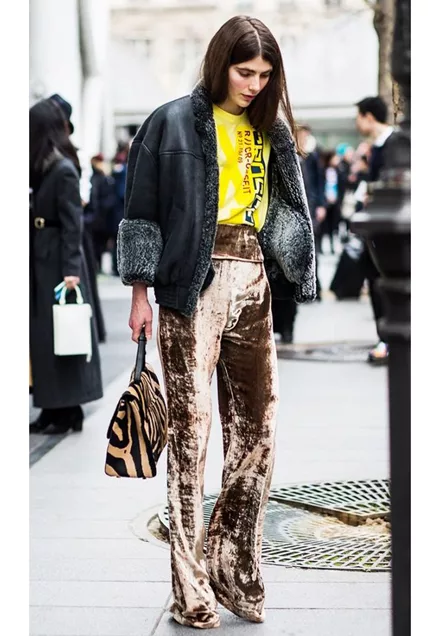 Το βελούδινο παντελόνι δείχνει τέλειο και για το γραφείο με ένα blazer και φούτερ.