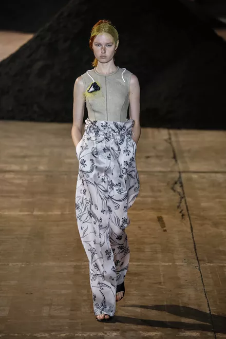 Ένα ψηλόμεσο, φαρδύ παντελόνι με statement print δεν χρειάζεται επιτηδευμένους συνδυασμούς. Δώσε έμφαση στα αξεσουάρ και στο hairstyle. (3.1. Phillip Lim)