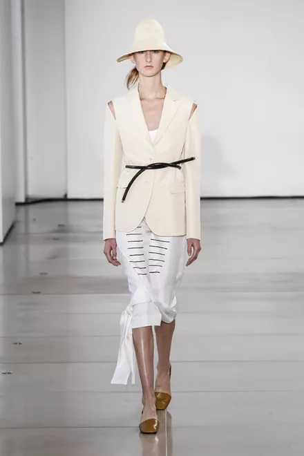 Αν έχεις ανασφάλεια με τον σωματότυπο σου, ένα σακάκι με λεπτή ζώνη που θα δίνει έμφαση στη μέση θα αναδείξει τα δυνατά σου σημεία. Ιδανικά προτίμησε ένα blazer σε γήινη απόχρωση και συνδύασέ το με μία floral φούστα. (Jil Sander)