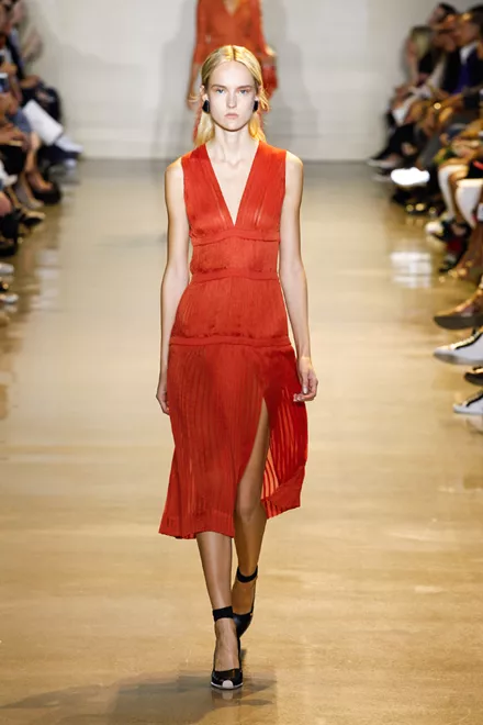 Αν είσαι μαυρισμένη προτίμησε χρώματα όπως αυτό που θα αναδείξουν ακόμα πιο πολύ την επιδερμίδα σου και συνδύασέ το με bronze μακιγιάζ και χρυσά κοσμήματα. (Altuzarra)