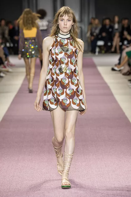 Ένα μίνι φόρεμα με κομψό μοτίβο που δένει στον λαιμό και αφήνει εκτεθειμένους τους ώμους είναι ό,τι έψαχνες!(Giambattista Valli)