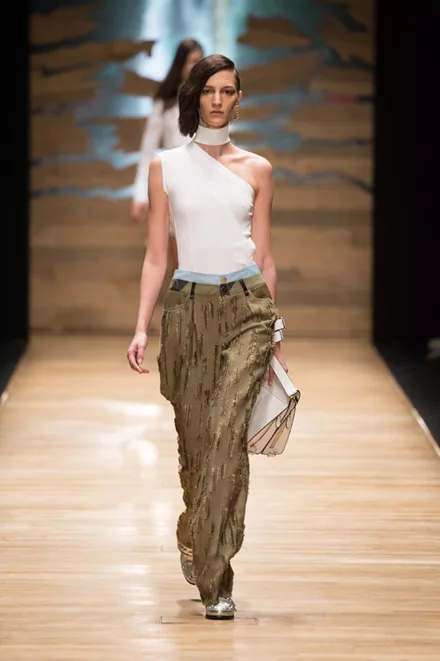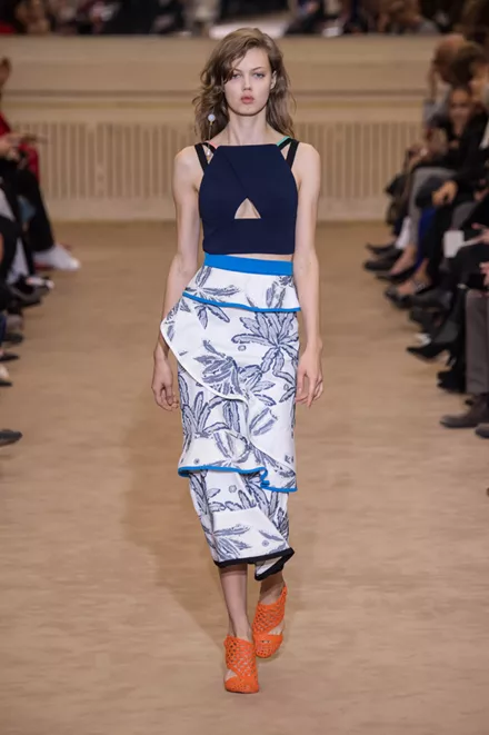 Ο συνδυασμός cropped top - midi φούστα παραμένει επίκαιρος. (Roland Mouret)