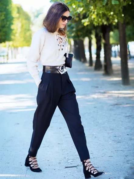 Συνδύασε τις lace up γόβες σου με κάποιο κορμάκι στο ίδιο μοτίβο. Κάποια στενή ζώνη στην μέση θα δημιουργήσει μία πολύ ενδιαφέρουσα φόρμα.