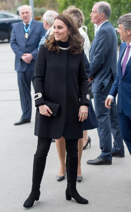 Η Kate Middleton αγαπά αυτό το συνδυασμό: πουλόβερ με skinny παντελόνι, κοντό παρκά και μπότες.