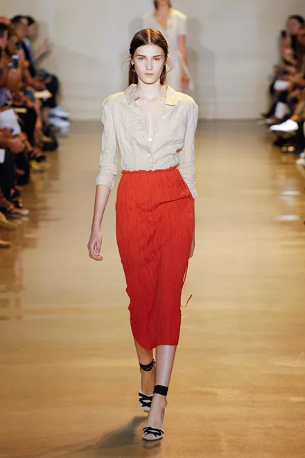 Oι πλισέ πιέτες και τα ζαρωμένα σατέν κυριάρχησαν, χάρη στους Joseph Altuzarra, Victoria Beckham και άλλους σχεδιαστές που έκαναν σαφές πως μπορούμε να γίνουμε λίγο πιο τεμπέλες αυτή την άνοιξη.