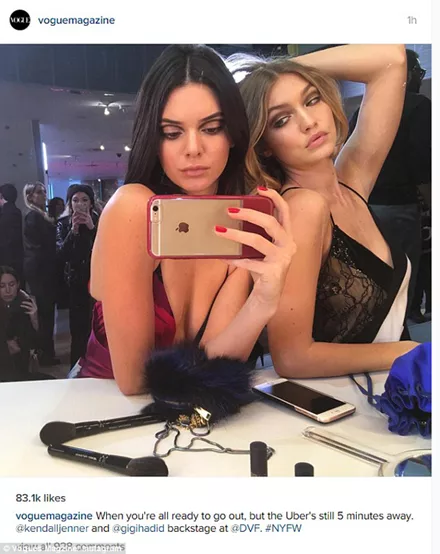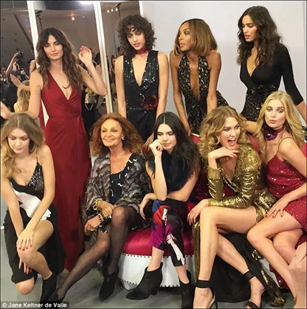 Πρώτες και καλύτερες σε αυτήν ποζάρουν -ποιες άλλες;- η Gigi Hadid με την κολλητή της, Kendall Jenner, που αποτελούν και -πέρα από τις μεγαλύτερες σταρς του NYFW- τις masters των φωτογραφιών αυτών, μιας και self-άρουν ανελέητα, ενώ σε δεύτερο πλάνο βλέπουμε τις Diane Von Furstenberg, Karlie Kloss, Jourdan Dunn, Lily Aldridge και Irina Shayk. Αναμφίβολα μία από τις πιο glamorous selfies που είδαμε τελευταία!