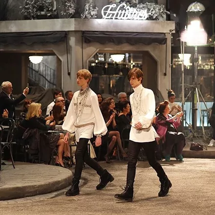 Όπως ήταν αναμενόμενο, ολόκληρο το fashion show αλλά και η συλλογή ήταν εμπνευσμένα από τη γοητεία του Κινηματογράφου, με τα μοντέλα να περπατούν σε ένα σκηνικό που μετέφερε τον θεατή πίσω, στις πιο γραφικές γωνιές του Παρισιού.