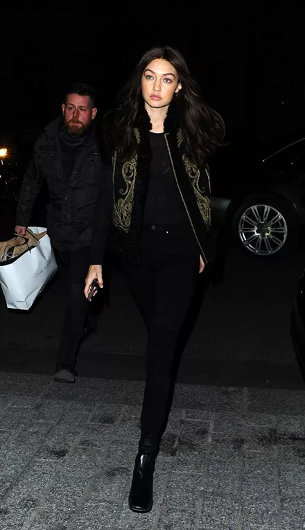 H Gigi Hadid, διατηρώντας το καστανό της look, επισκέφτηκε το ξενοδοχείο της Kendall Jenner για δείπνο