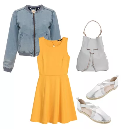 Bomber jacket, Pink Woman, 35,99 ευρώ, www.pinkwoman-fashion.comΦόρεμα, H&M, 9,99 ευρώ, www.hm.com/grΤσάντα πουγκί, Axel, 64,00 ευρώ, www.axelaccessories.comEspadrilles, Keep Fred, 59,00 ευρώ, www.keepfred.gr