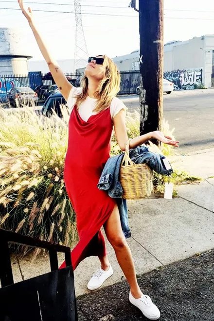 Και η Camille Rowe εγκρίνει τον hot συνδυασμό και προσθέτει sneakers για ένα cool outfit. Φωτογραφία: Instagram/@fingermonkey
