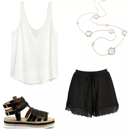 Λευκό τοπ, H&M, 12,99 ευρώ, www.hm.comΣορτς με δαντέλα, E-xclusive, 29 ευρώ, www.e-xclusive.comΣανδάλια flatform, Bozikis, 34,99 ευρώ, www.bozikis.grΚολιέ, Li La Lo, 130,00 ευρώ, www.lilalo.com