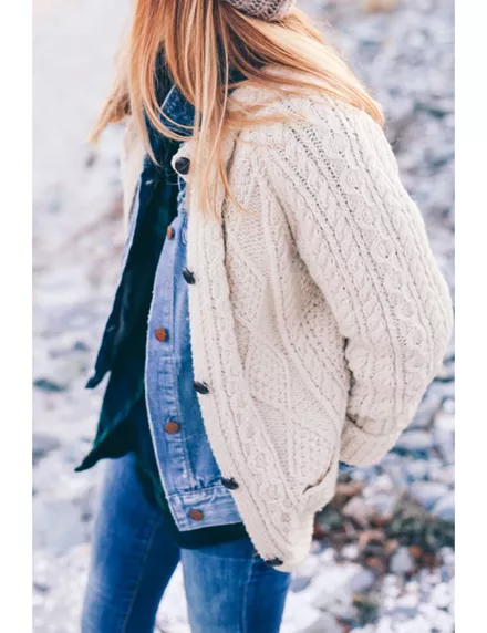 Η χοντρή ζακέτα "του παππού" φοριέται πάνω από τζιν μπουφάν και δίνει λίγο 90s grunge χαρακτήρα στο look σου.