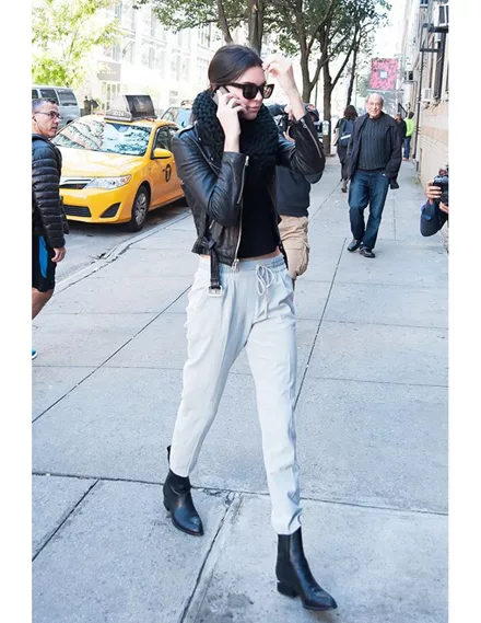 Φόρεσε τη φόρμα σου μαζί με chelsea boots, δερμάτινο jacket και ένα στενό ζιβάγκο όπως η Kendall Jenner.
