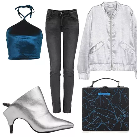 Τζιν Celestino, 18,95 ευρώ, celestino.grCrop top βελουτέ Pink Woman, 3,99 ευρώ, pinkwoman-fashion.comMules Jeffrey Campbell, 191,40 ευρώ, favela.grBomber jacket Η&Μ, 27,99 ευρώ, hm.comΤσάντα Axel, 29,00 ευρώ, axelaccessories.com