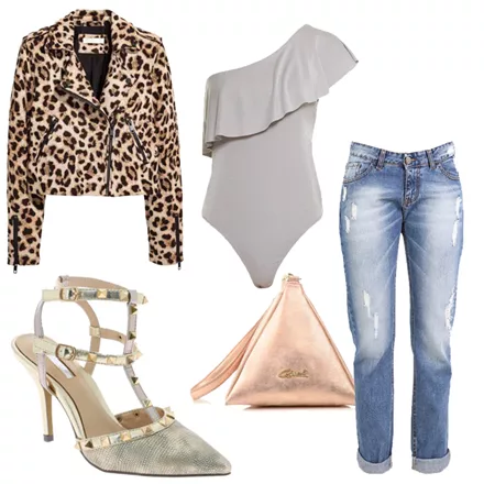 Τζιν e-xclusive, 29,00 ευρώ, e-xclusive.comΚορμάκι με βολάν, 15,99 ευρώ, pinkwoman-fashion.comΓόβες με τρουκς IQ Shoes, 34,90 ευρώ, iqshoes.grΤσαντάκι Axel, 16,50 ευρώ, axelaccessories.comΤζάκετ animal print H&M, 49,99 ευρώ, hm.com