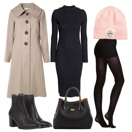 Παλτό, Helmi, από 99,00 τώρα 59,90 ευρώ, helmi.grΦόρεμα, H&M, 34,99 ευρώ, hm.comΣκουφάκι, H&M, 7,99 ευρώ, hm.comΤσάντα, Axel, από 79,00 τώρα 55,30 ευρώ, axelaccessories.comΜποτάκια, Alba Moda, από 109,00 τώρα 79,00 ευρώ, sagiakos.grΚαλσόν, H&M, 9,99 ευρώ, hm.com