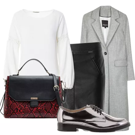 Τσάντα, Migato, 64 ευρώ, www.migato.comΜπλούζα, Regalinas, 24.90 ευρώ, www.regalinas.grΦούστα, Attrattivo, 54.90 ευρώ, www.attrattivo.grΠαλτό, BSB, 169.90 ευρώ, www.bsbfashion.comΠαπούτσια, Vince Camuto, 169 ευρώ, www.kalogirou.com