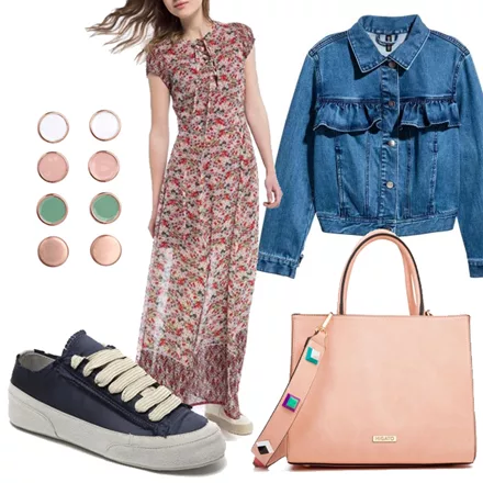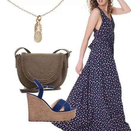 Πλατφόρμες, Migato, 60 ευρώ, www.migato.comΚολιέ με σχέδιο, H&M, 4.99 ευρώ, www2.hm.comΜάξι floral φόρεμα, Regalinas, 53.90 ευρώ, www.regalinas.grΤσάντα, Bozikis, 29.99 ευρώ, www.bozikis.gr